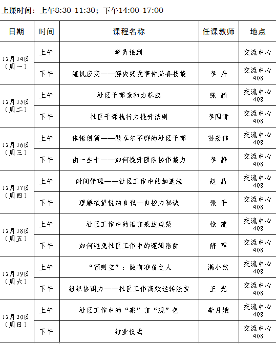 2020年全省城乡社区党组织副书记素质能力提升专题培训班第十一期(总81期)培训班课程安排