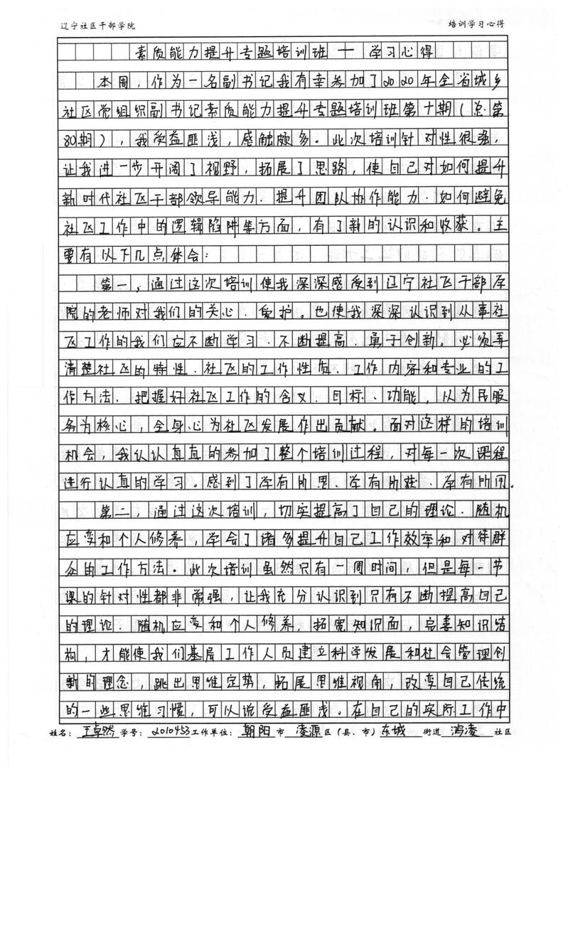 朝阳市凌源区东城街道鸿凌社区王卓然心得