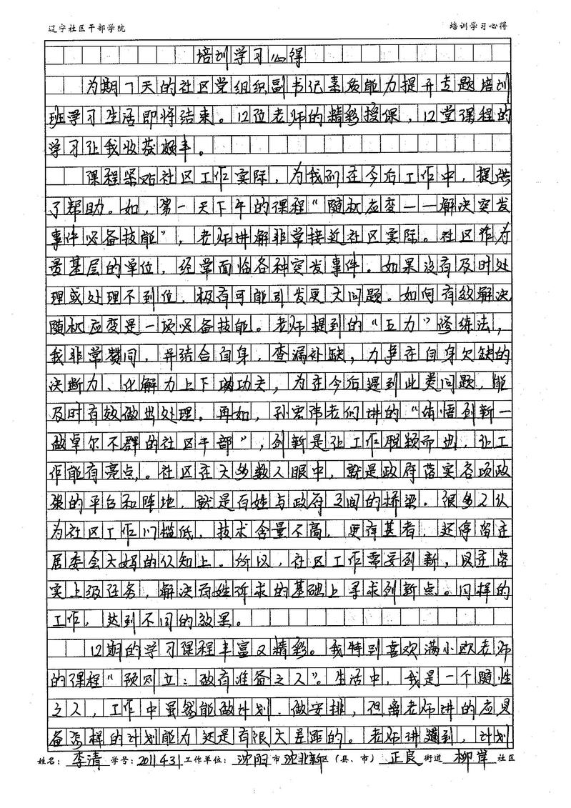 沈阳市沈北新区正良街道柳岸社区李清学习心得