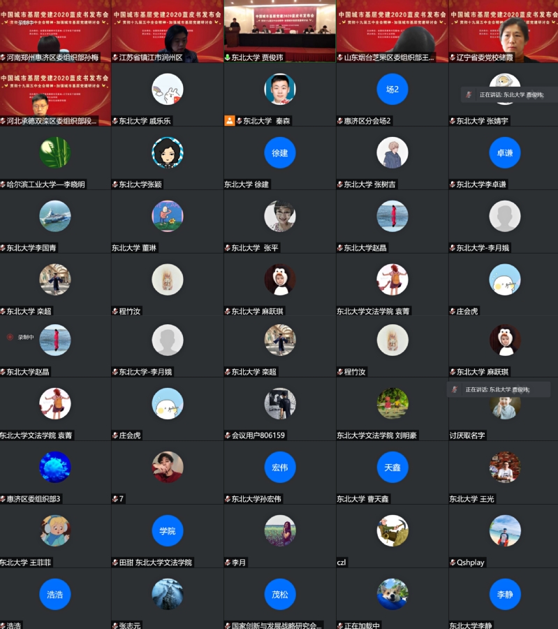 12月27日,“中国城市基层党建报告(2020)蓝皮书发布会”在东北大学召开。此次发布会由全国党员教育培训示范基地辽宁社区干部学院主办,东北大学文法学院、东北大学跨文化战略研究院承办。