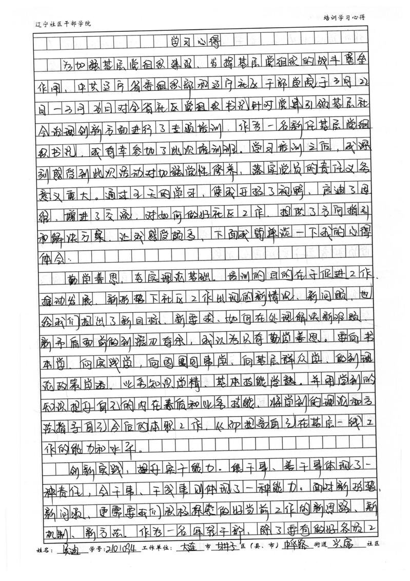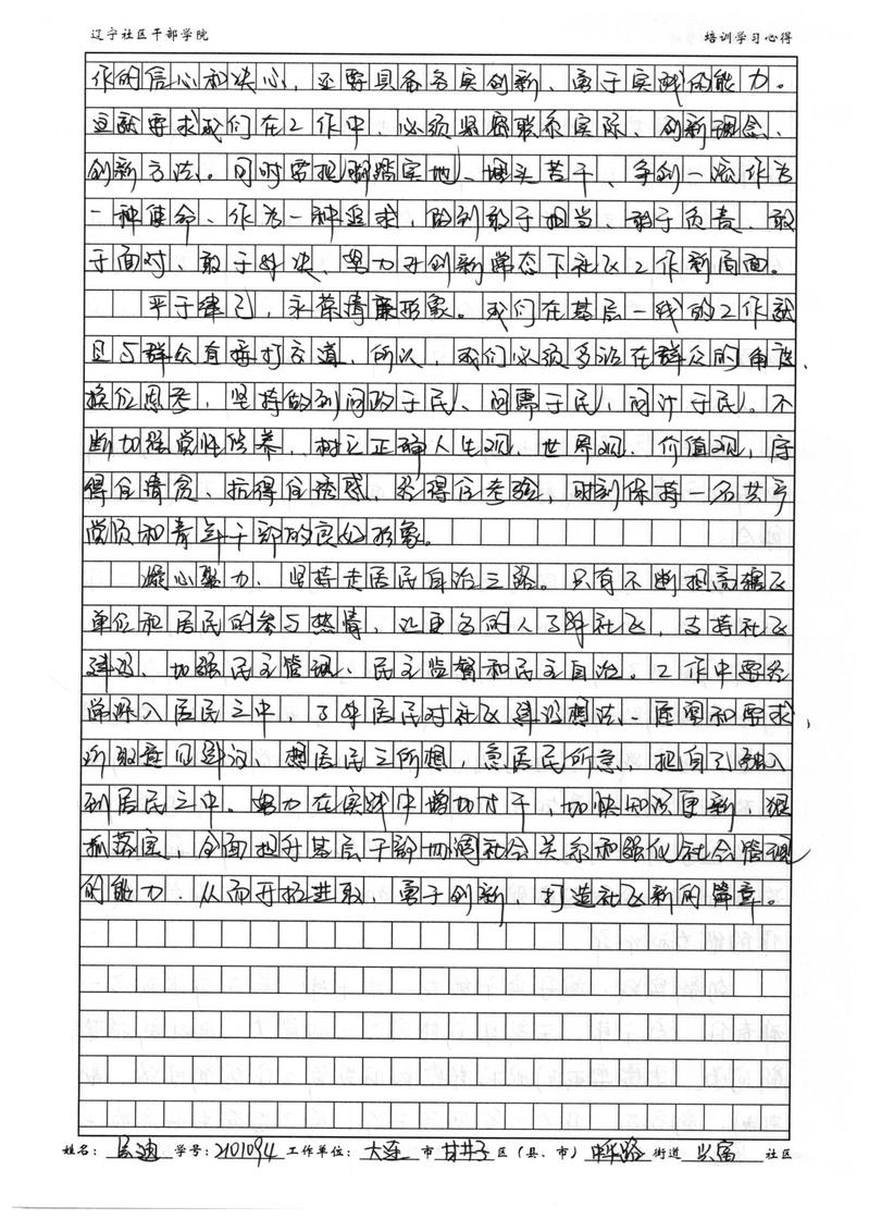 大连市甘井子区中华路街道兴富社区书记吴迪培训学习心得