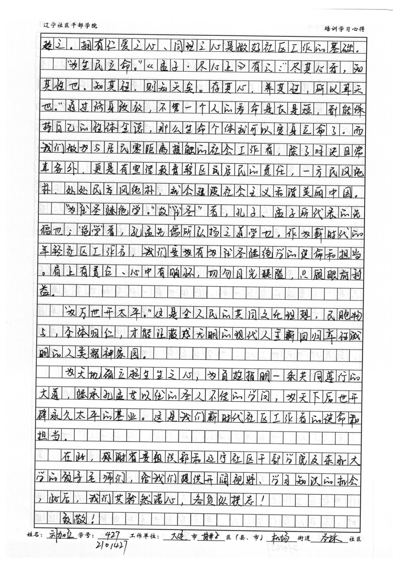 大连市甘井子区机场街道圣林社区副书记刘加红培训学习心得