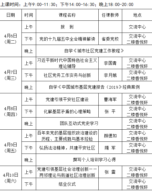 2021年全省城乡社区党组织书记党建引领基层社会治理创新专题第二期(总102期)培训班课程安排