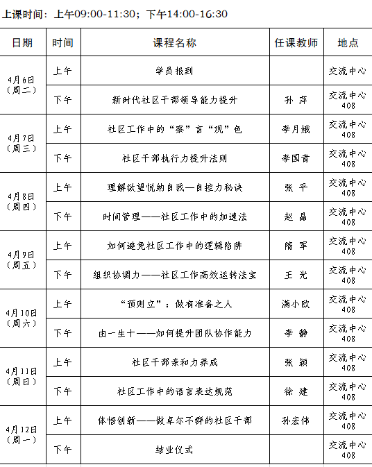 2021年全省城乡社区工作者(党组织副书记)素质能力提升专题培训班第二期(总第83期)培训班课程安排