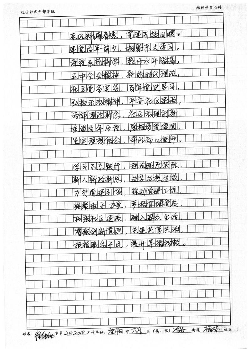 沈阳市大东区二台子街道福安社区书记崔佳佳培训学习心得