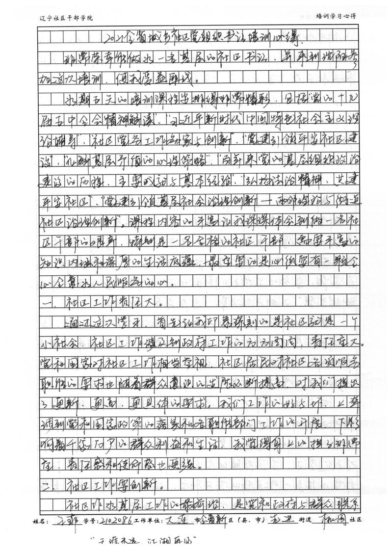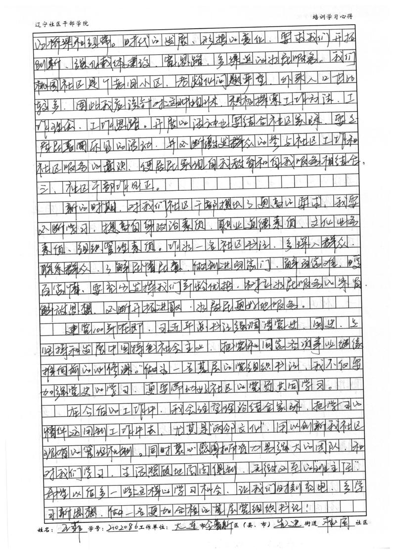 大连金普新区先进街道桃园社区书记王菲培训学习心得