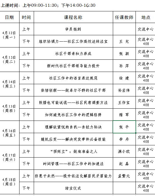 2021年全省城乡社区工作者(党组织副书记)素质能力提升专题培训班第三期(总第84期)培训班课程安排