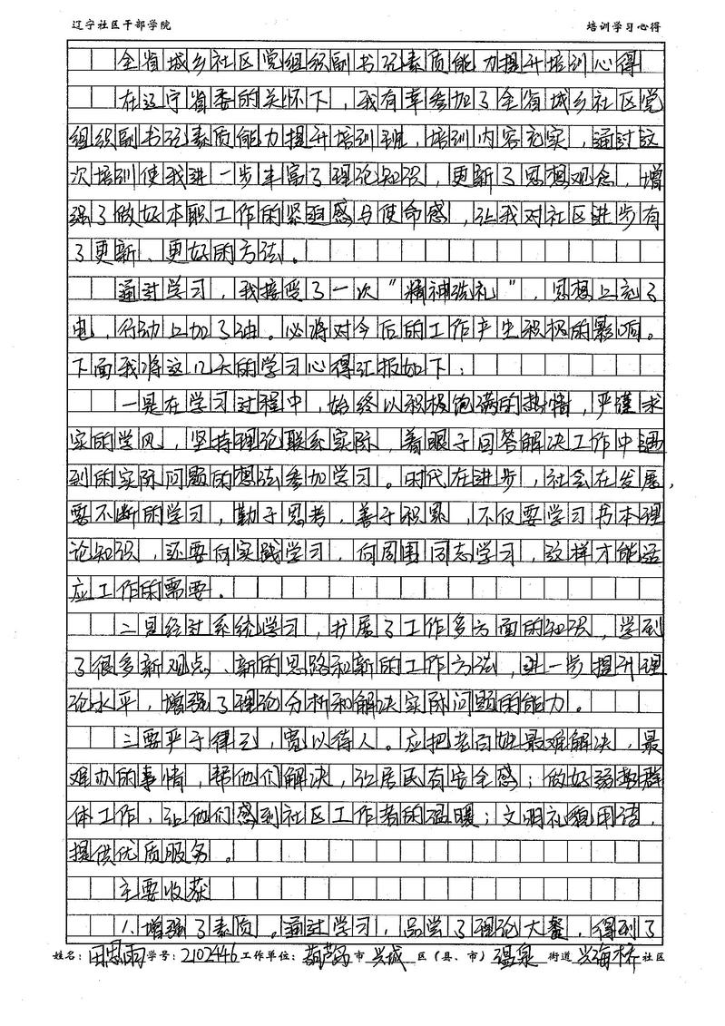 葫芦岛市兴城市温泉街道兴海桥社区副书记田思雨学习心得