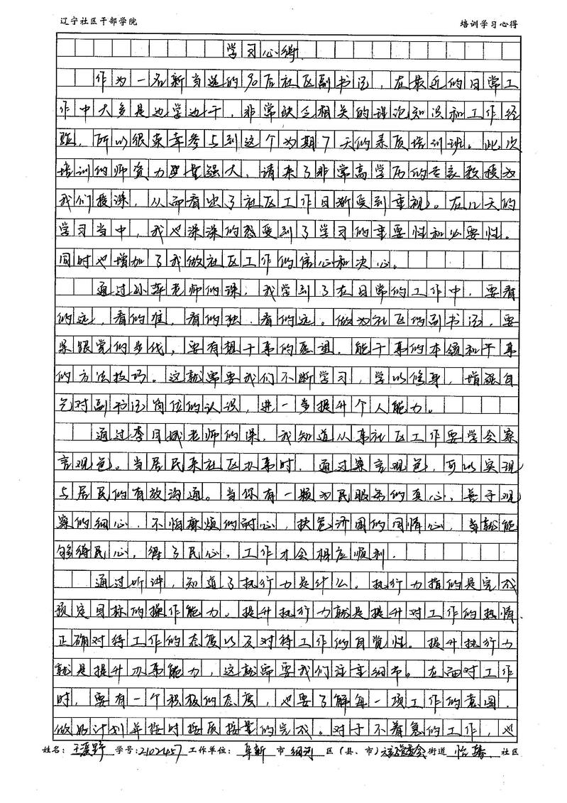 阜新市细河区六家子管委会怡馨社区副书记王溪野学习心得