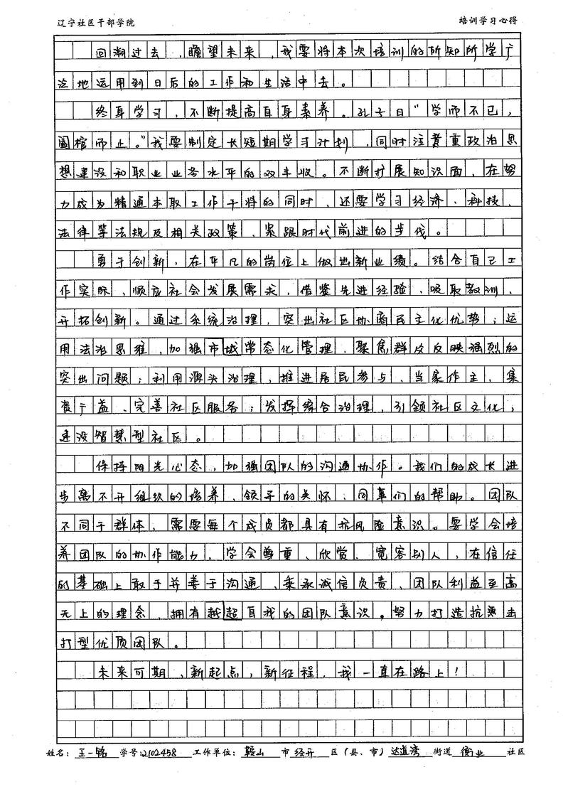 鞍山市经开区达道湾街道衡业社区副书记王一铭学习心得
