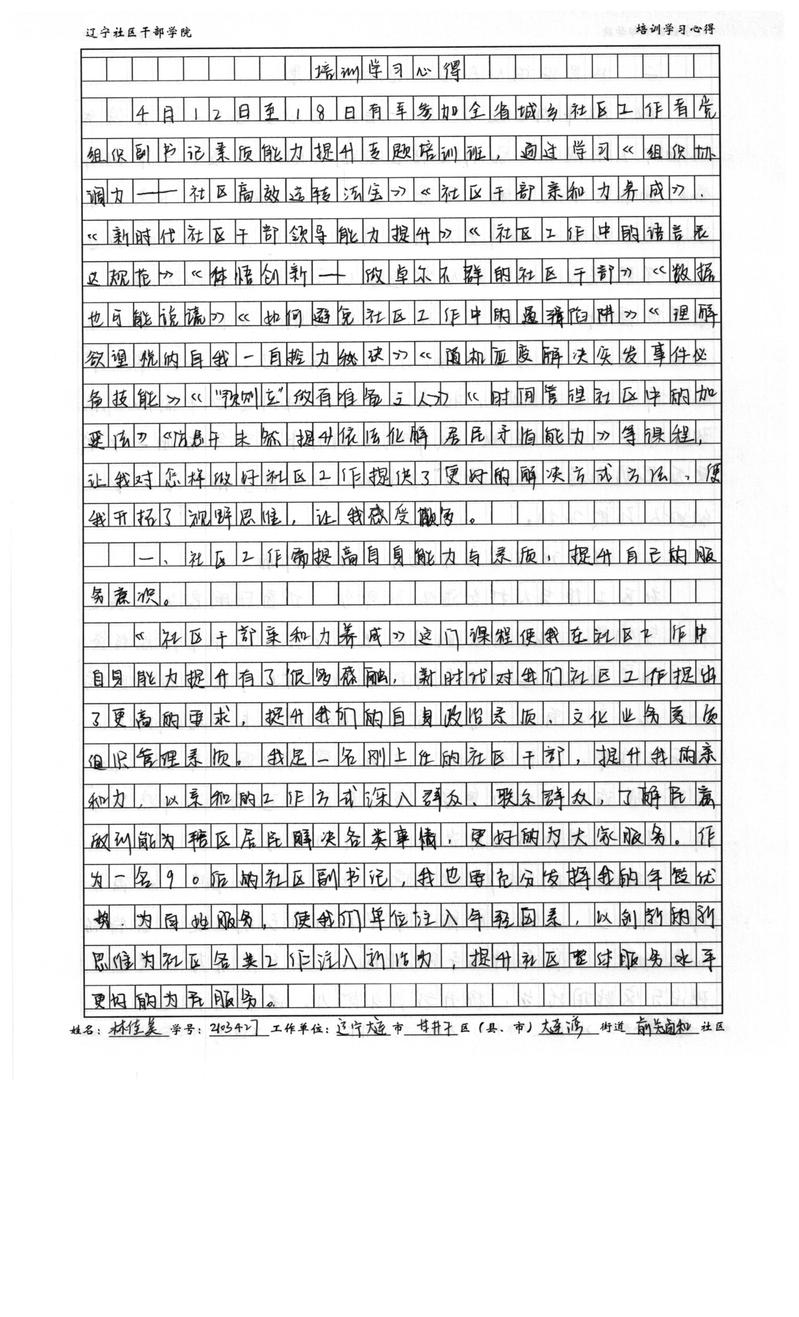 大连市甘井子区大连湾街道前关通和社区副书记林佳美培训学习心得