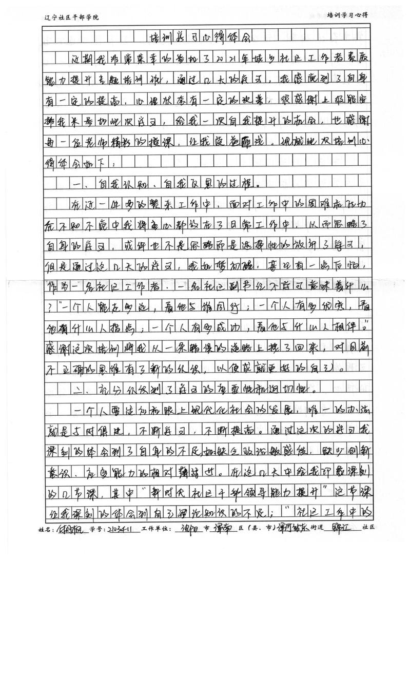 沈阳市浑南区浑河站东街道锦江社区副书记付丹枫培训学习心得