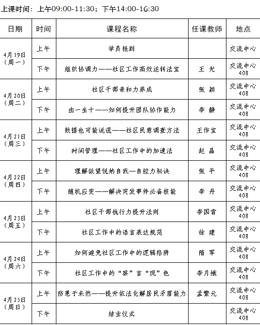 2021年全省城乡社区工作者(党组织副书记)素质能力提升专题培训班第四期(总第85期)培训班课程安排