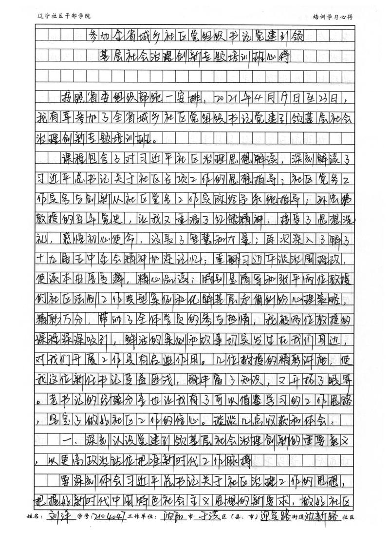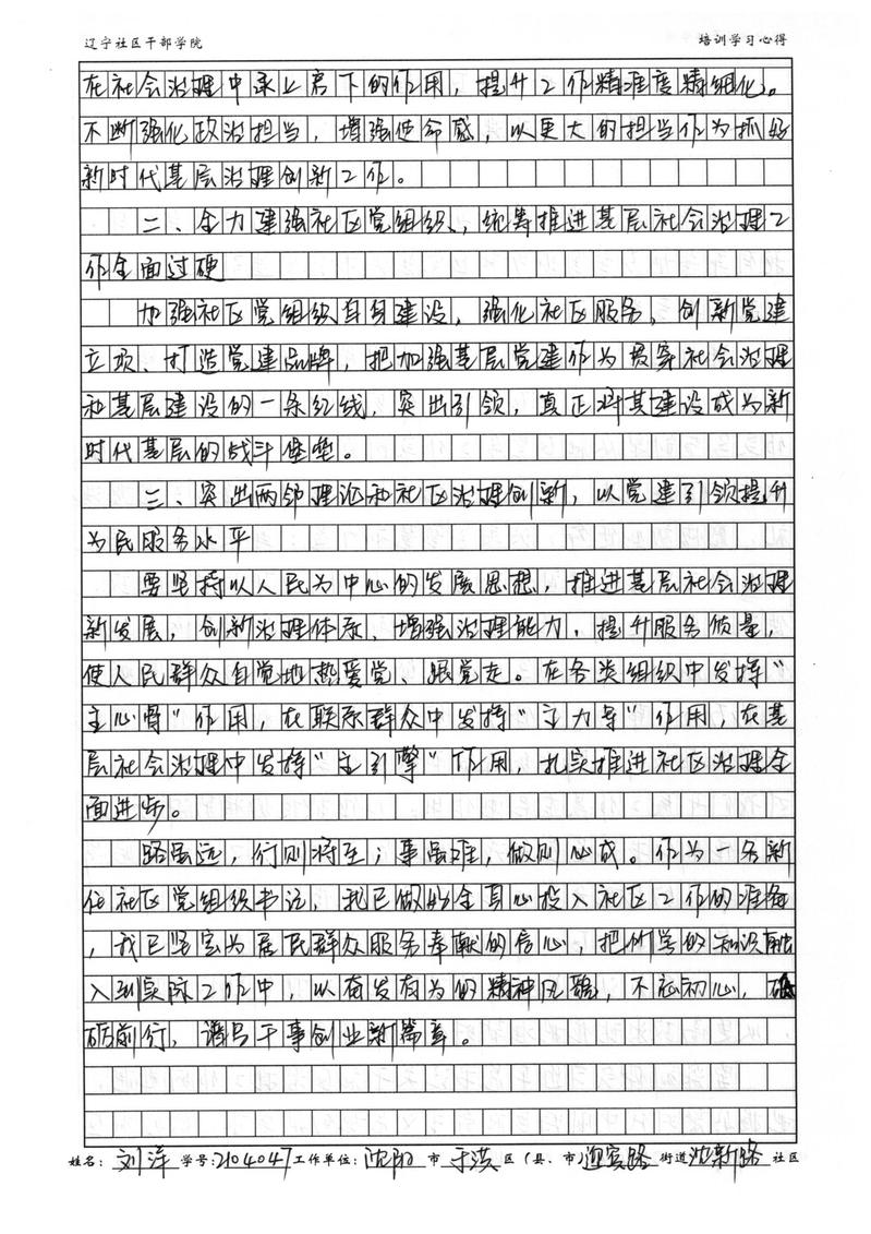 沈阳市于洪区迎宾路街道沈新路社区书记刘洋培训学习心得