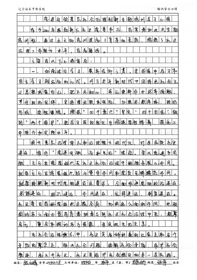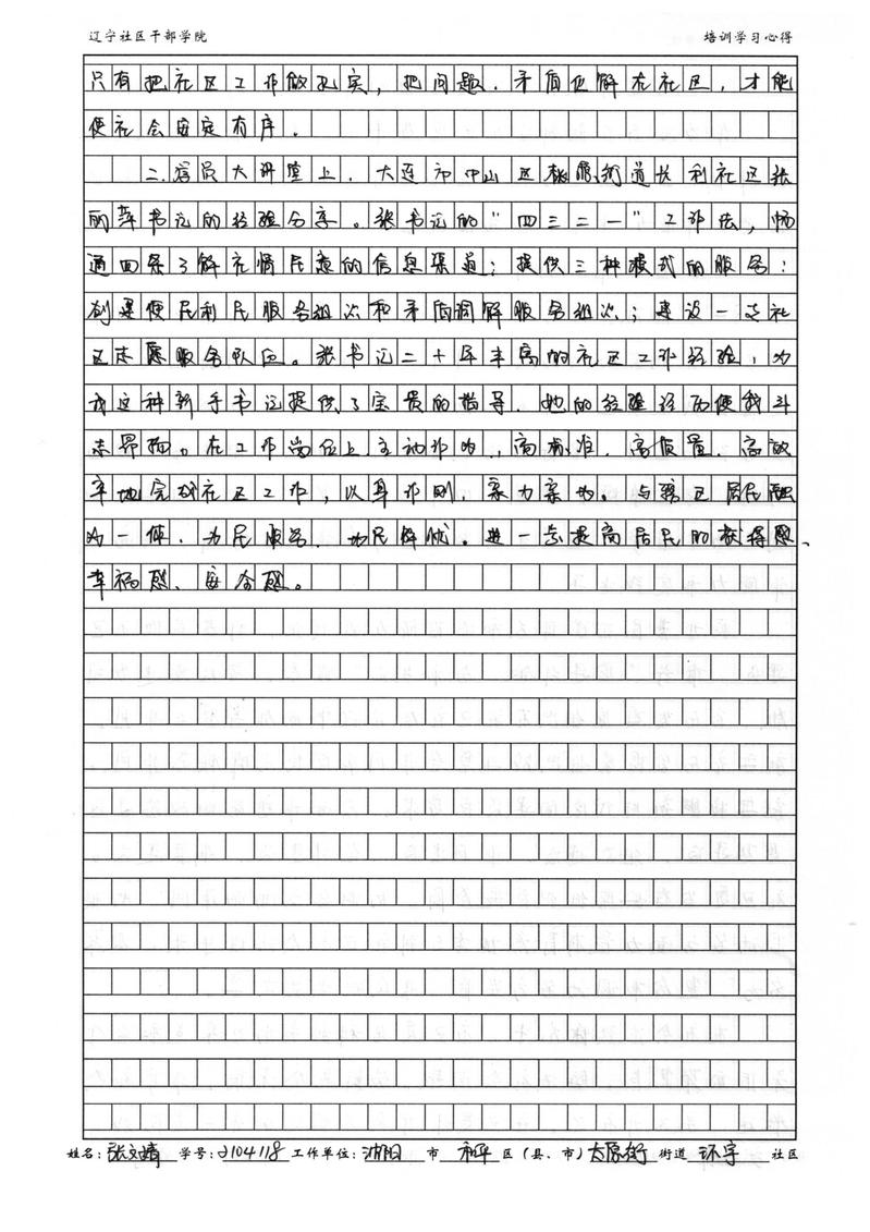 沈阳市和平区太原街街道环宇社区书记张文靖培训学习心得