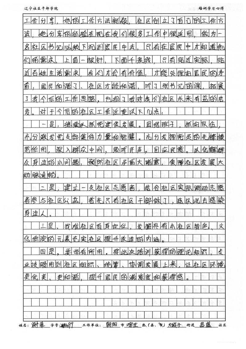 朝阳市喀左县大城子街道昌盛社区书记谢菲培训学习心得