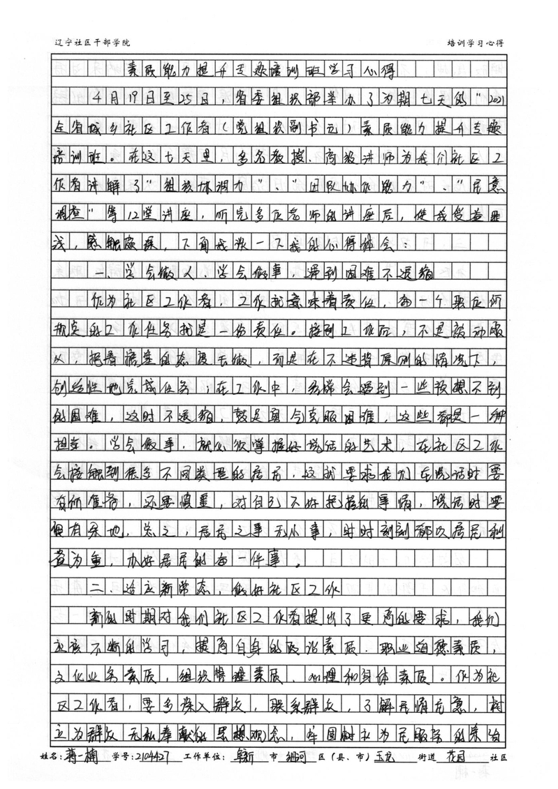 阜新市细河区玉龙街道花园社区副书记蒋一楠培训心得