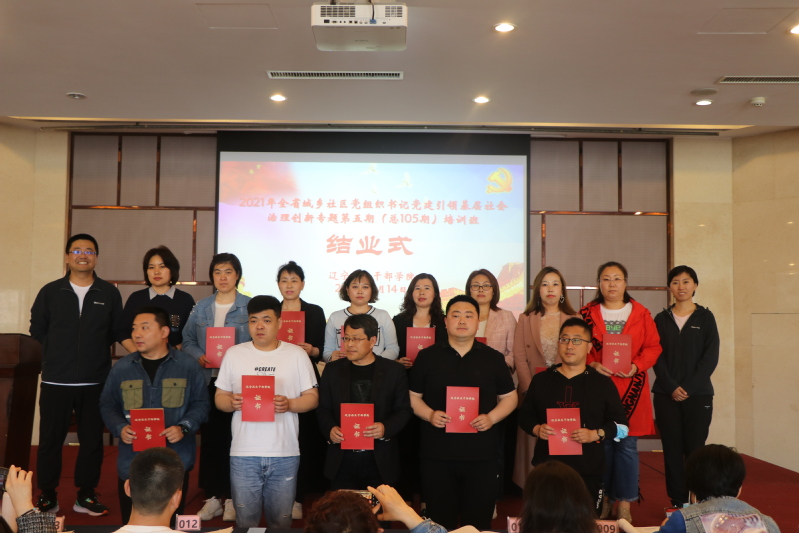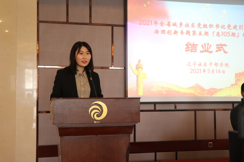 5月14日10:30,2021年全省城乡社区党组织书记党建引领基层社会治理创新专题培训班第五期(总105期)培训班结业仪式在东北大学国际学术交流中心二楼香悦轩举行,辽宁社区干部学院办公中心主任、东北大学文法学院副院长李丹同志,辽宁社区干部学院培训部主任赵璇同志参加了本次结业仪式,仪式由赵璇主持。