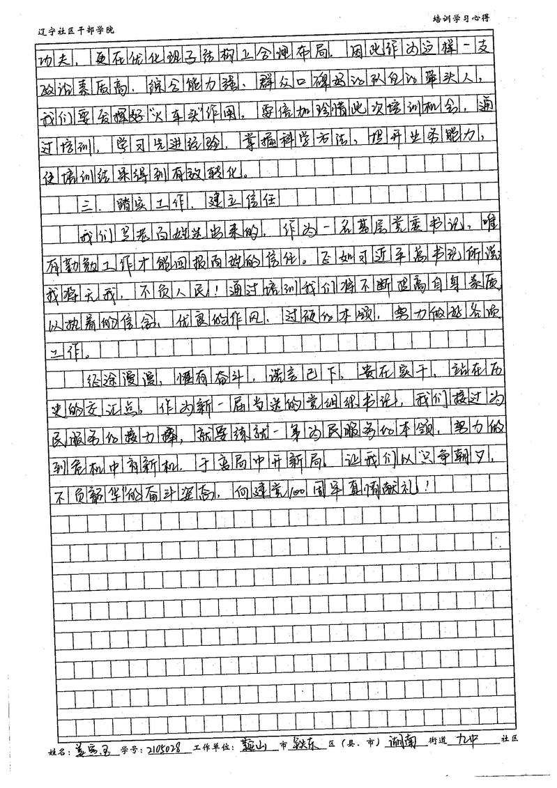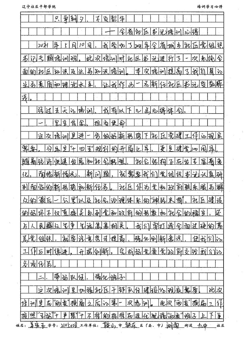 鞍山市铁东区湖南街道九中社区书记姜寅玉培训心得