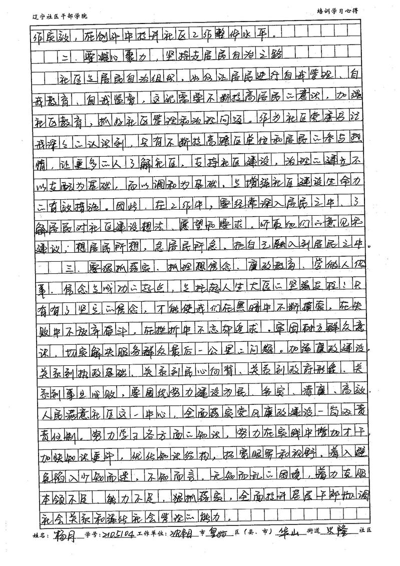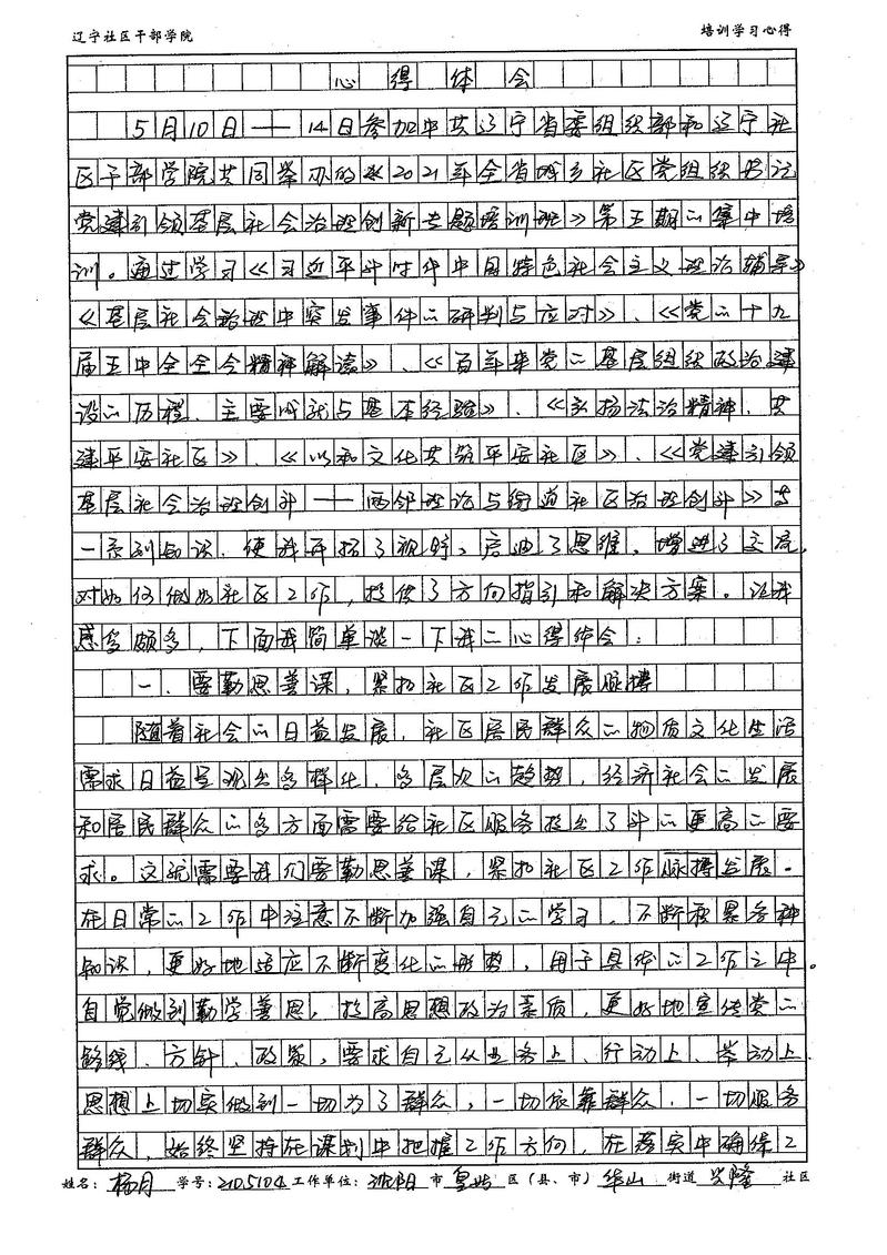 沈阳市皇姑区华山街道兴隆社区书记杨月培训心得