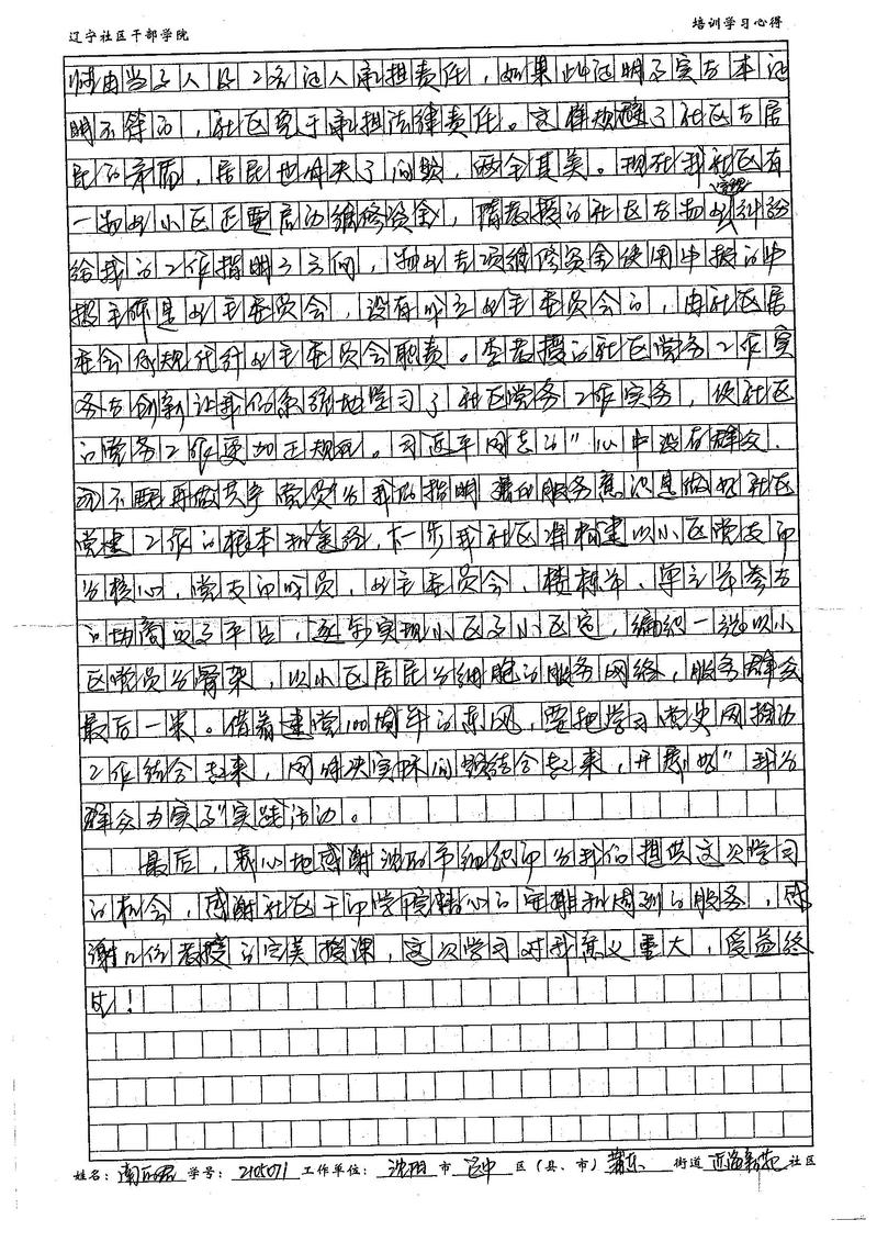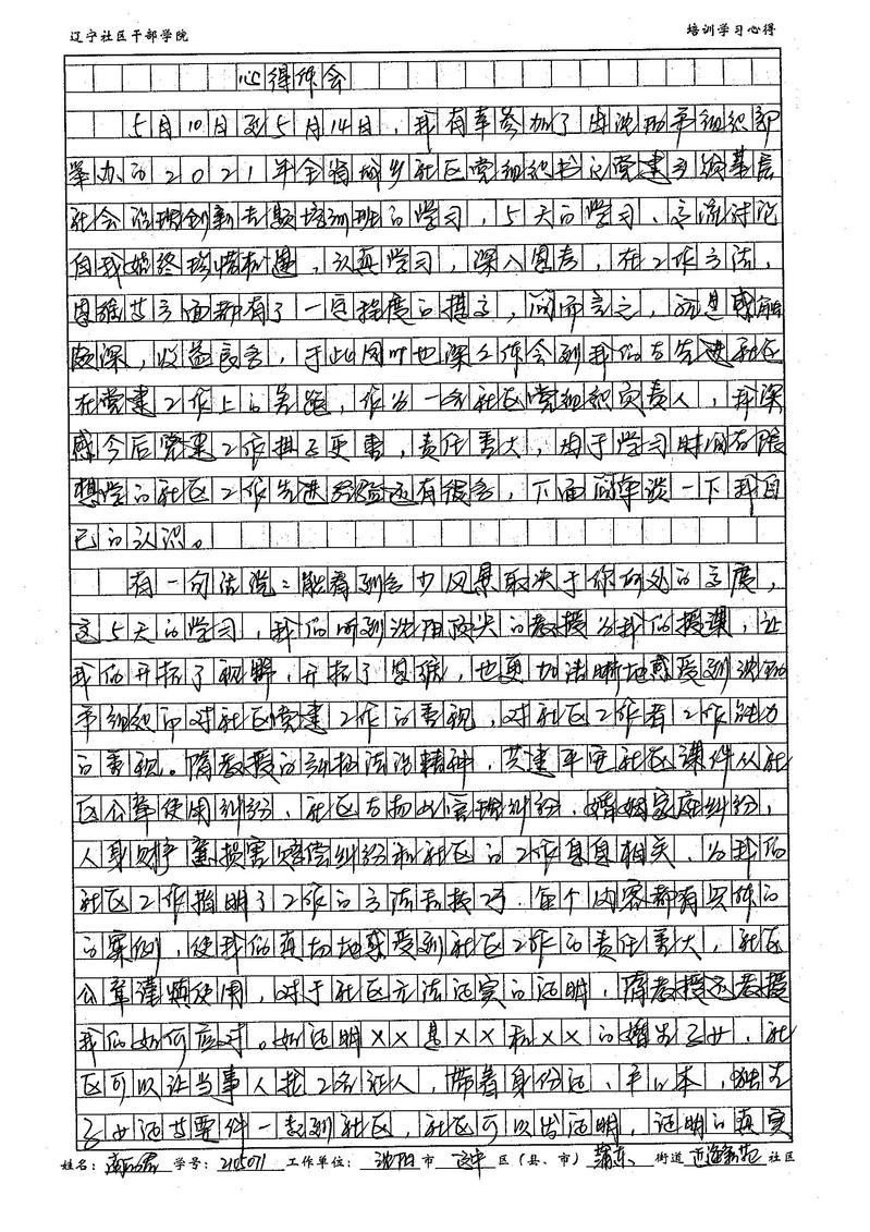 沈阳市辽中区蒲东街道近海新苑社区书记南丽君培训心得