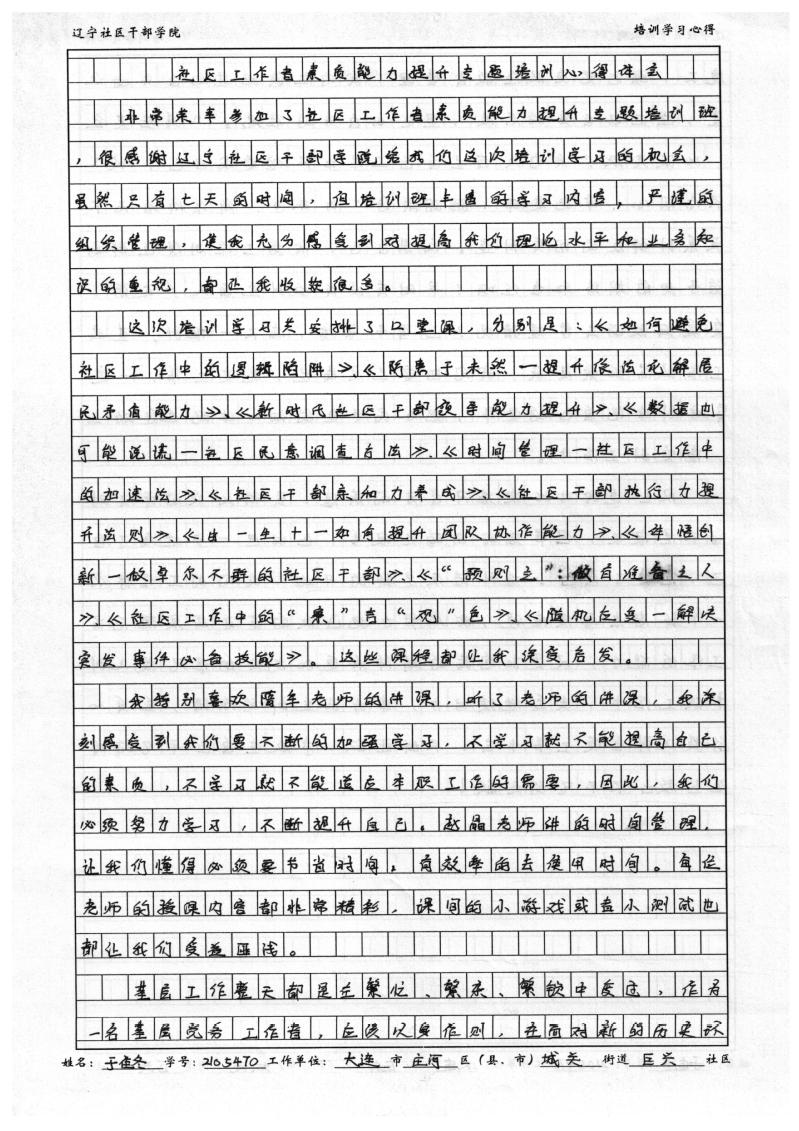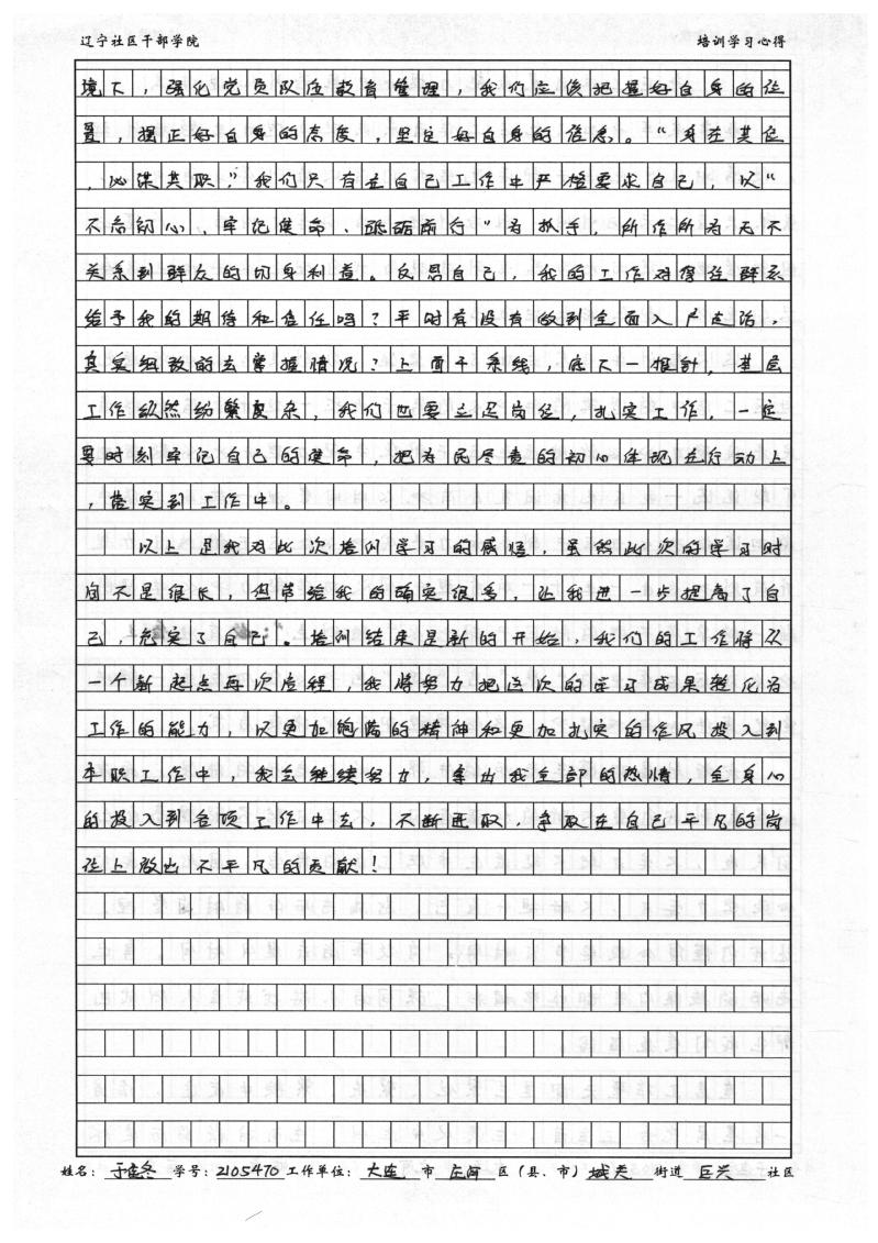 大连市庄河市城关街道巨兴社区党总支副书记于佳冬培训学习心得