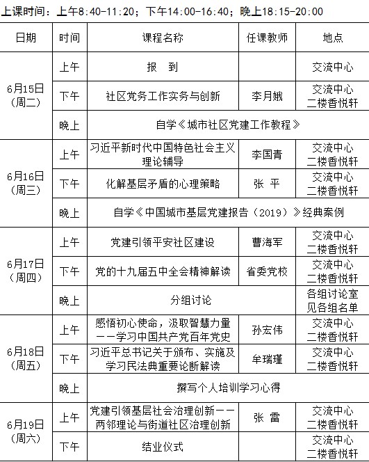2021年全省城乡社区党组织书记党建引领基层社会治理创新专题第六期(总106期)培训班课程安排