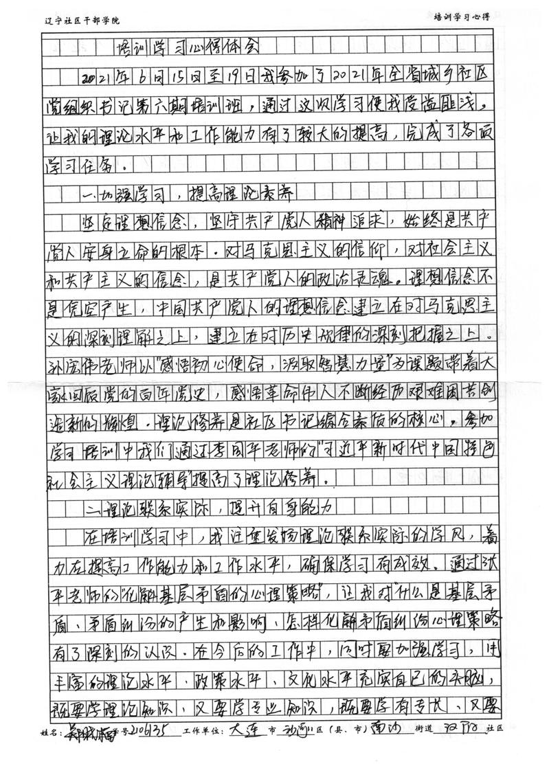 大连市沙河区南沙街道汉阳社区郑晓楠学习心得