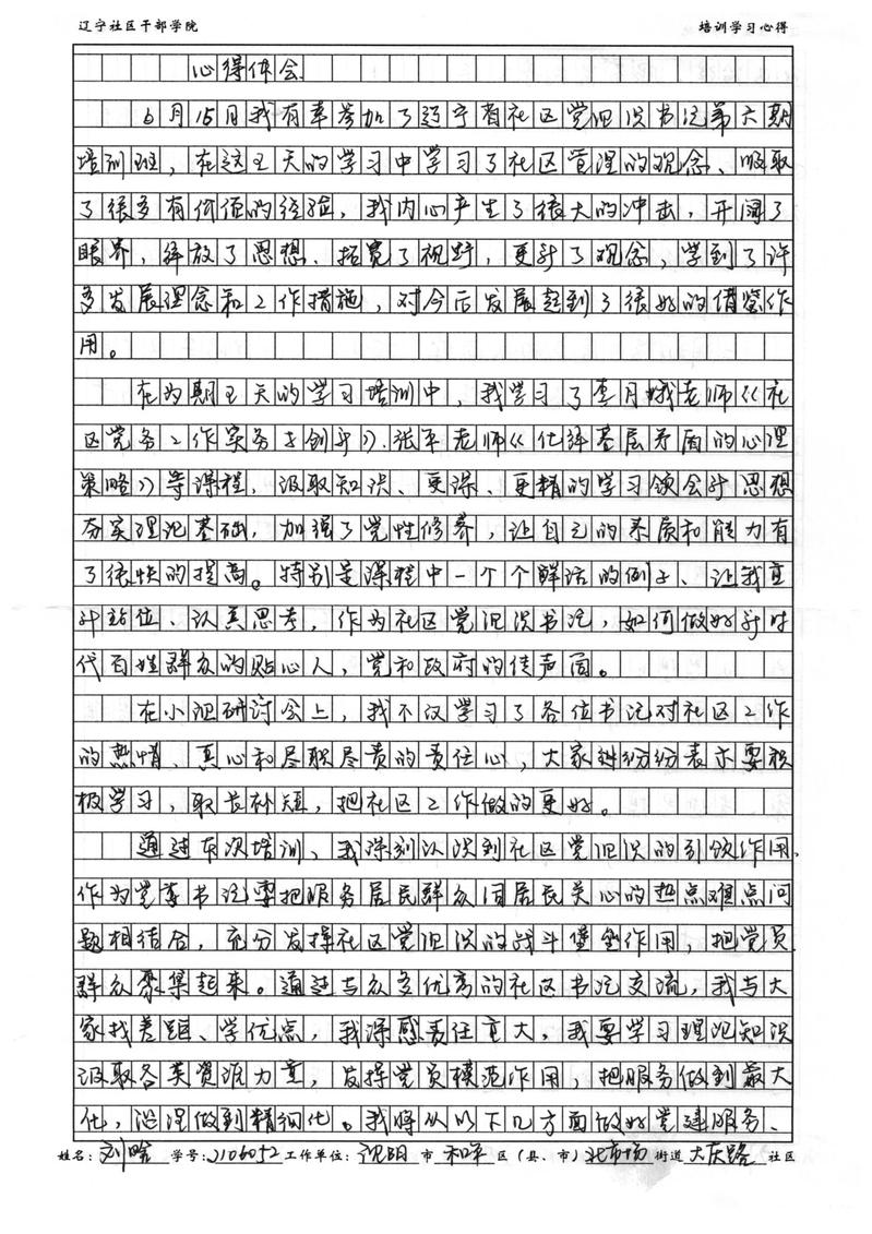 沈阳市和平区北市场街道大庆路社区刘晗学习心得