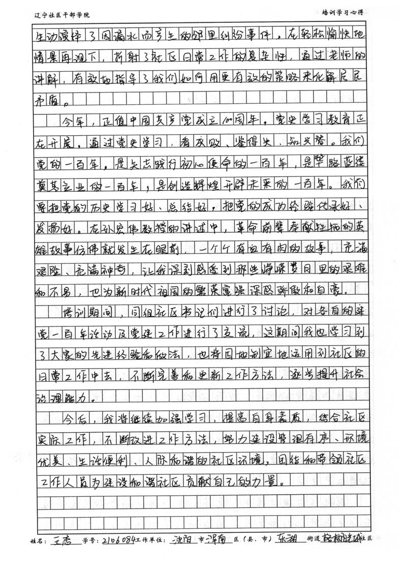 沈阳市浑南区东湖街道格林阳光城社区王恋学习心得