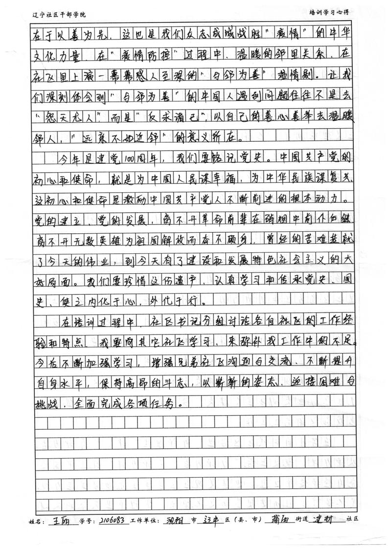沈阳市辽中区蒲西街道建材社区王丽学习心得