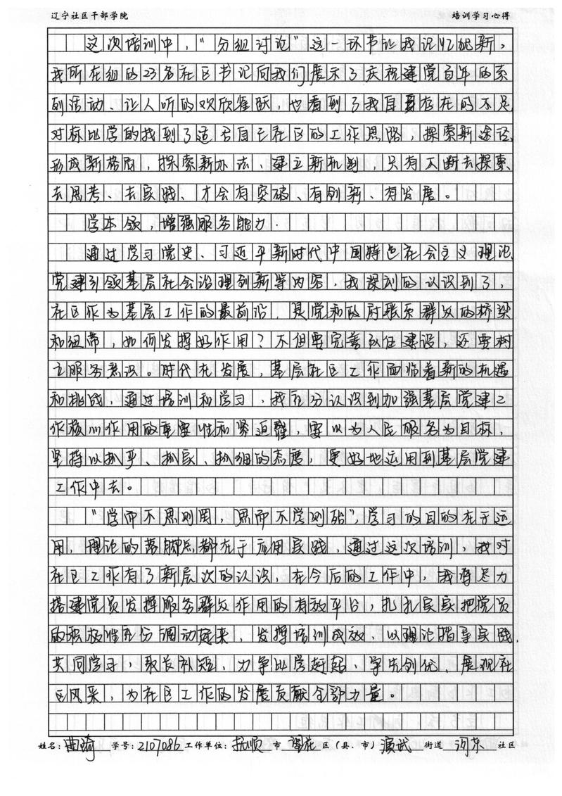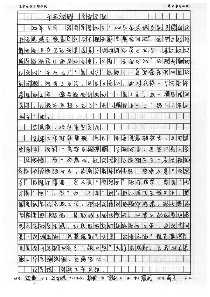 抚顺市望花区演武街道河东社区书记曲琦学习心得
