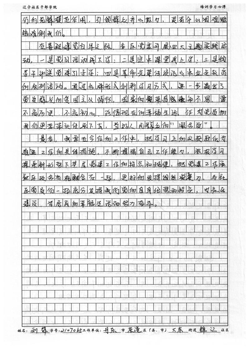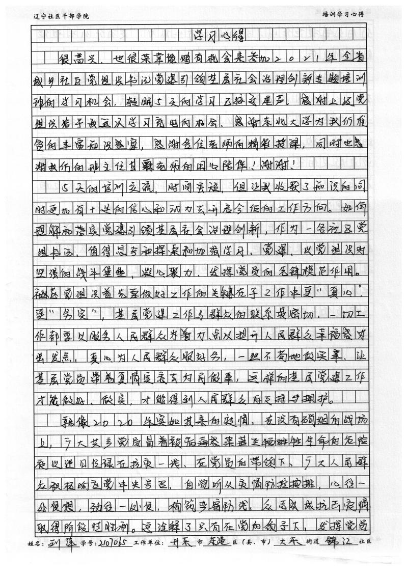 丹东市东港市大东街道锦江社区书记刘萍学习心得