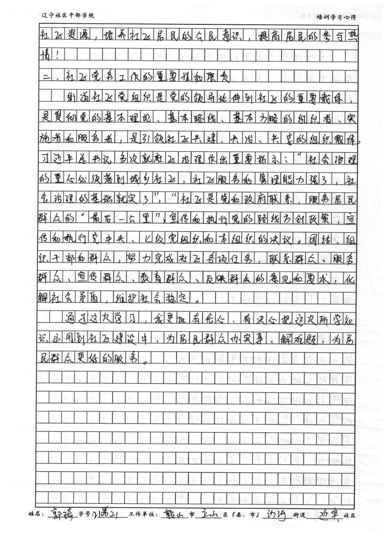 鞍山市立山区沙河街道迎宾社区书记郭琦学习心得