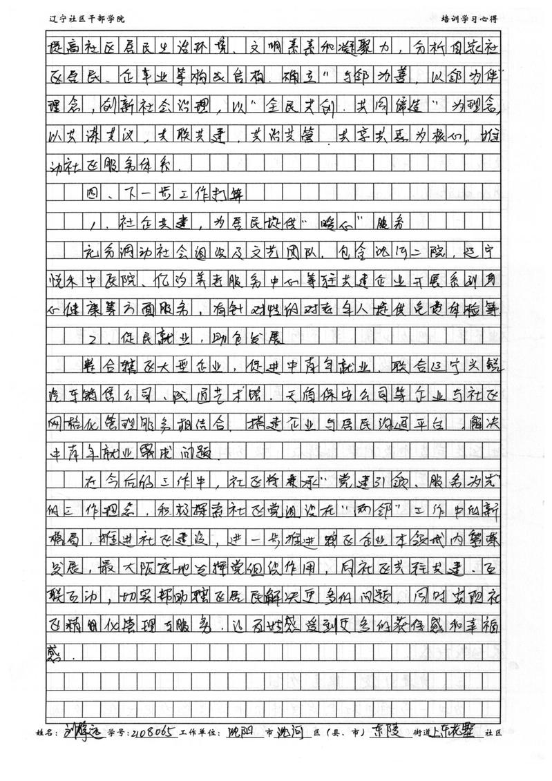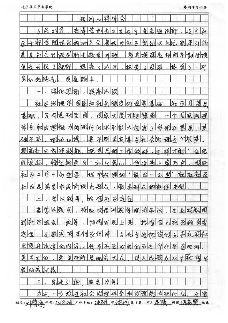 沈阳市沈河区东陵街道上东花墅社区书记刘静远学习心得