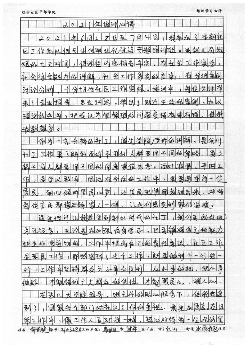 朝阳市建平县红山街道水源社区副书记邹景艳学习心得