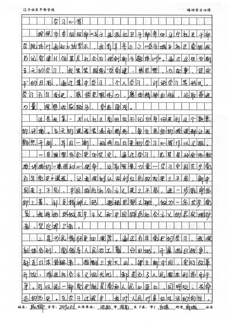 沈阳市浑南区白塔街道府城社区书记陈娜学习心得