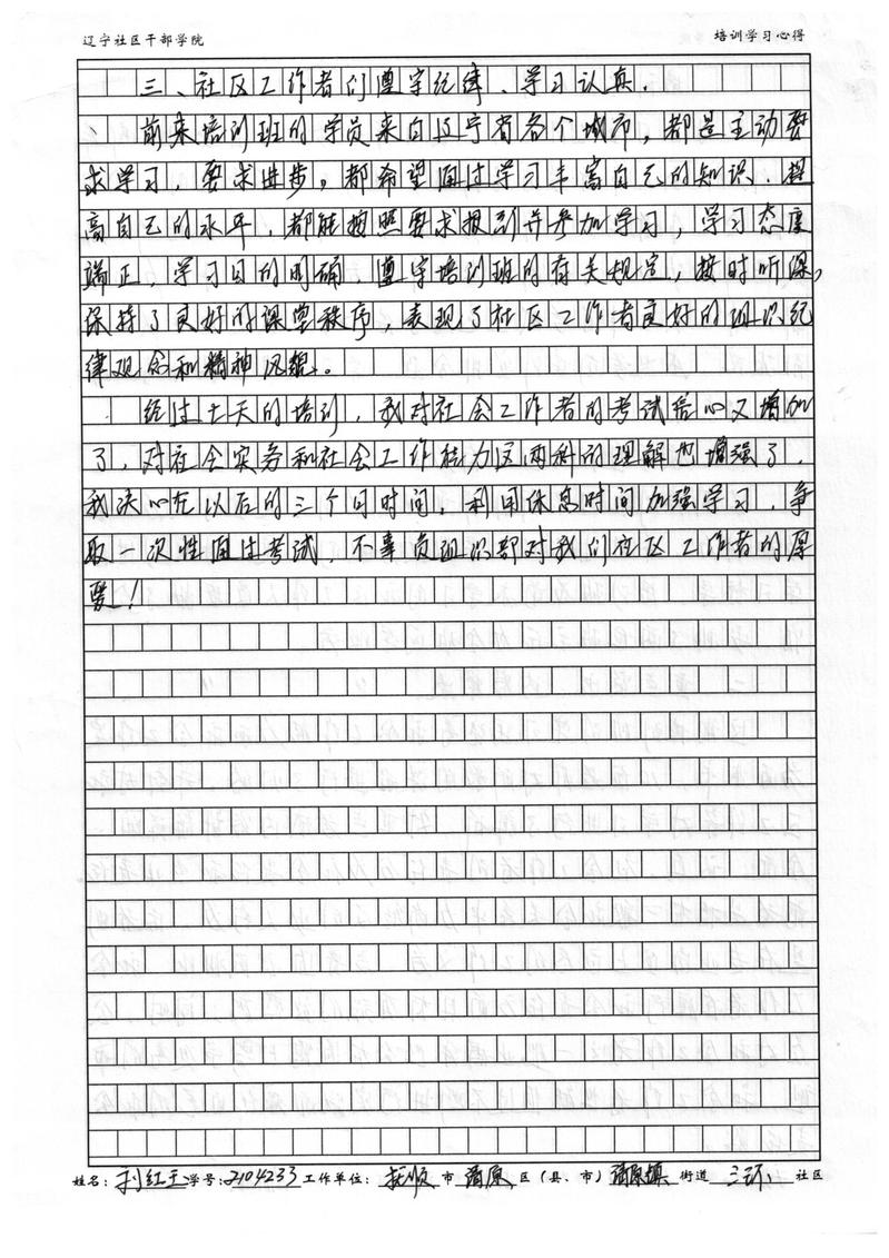 抚顺市清原县清原镇三环社区副书记刘红玉学习心得