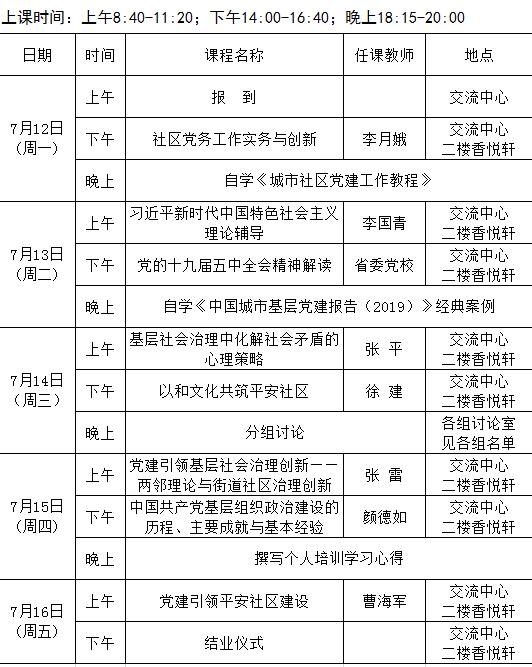 2021年全省城乡社区党组织书记党建引领基层社会治理创新专题第十期(总110期)培训班课程安排