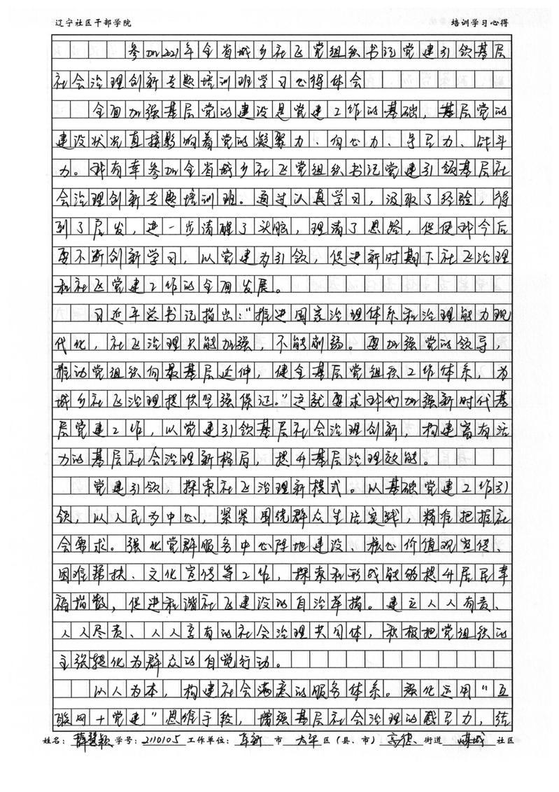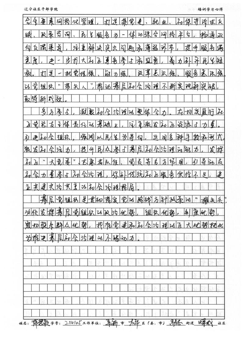 阜新市太平区高德街道煤城社区书记薛慧颖学习心得