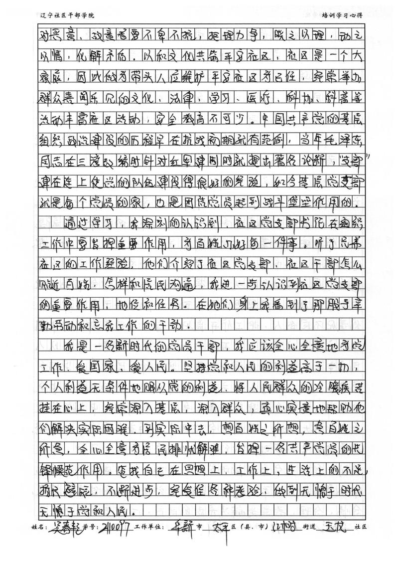 阜新市太平区红树街道玉龙社区书记吴春艳学习心得