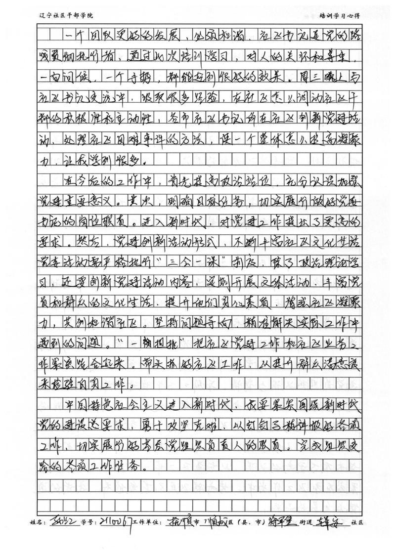 抚顺市顺城区将军堡街道辑安社区书记孙红学习心得