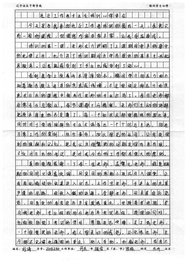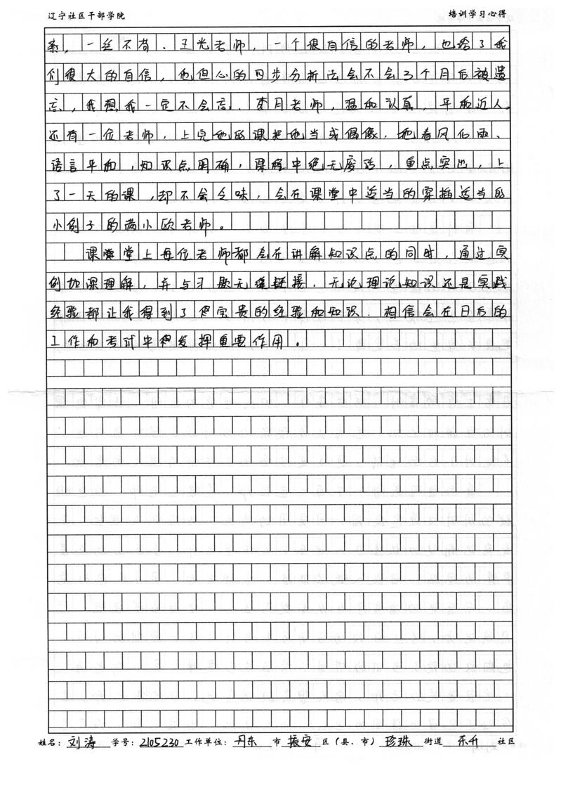 丹东振安区珍珠街道东升社区刘涛培训学习心得