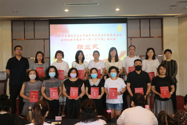 7月23日10:30,2021年全省城乡社区党组织书记党建引领基层社会治理创新专题培训班第十一期(总111期)培训班结业仪式在东北大学国际学术交流中心二楼香悦轩举行,辽宁社区干部学院办公中心主任、东北大学文法学院副院长李丹同志,辽宁社区干部学院培训部主任赵璇同志参加了本次结业仪式,仪式由赵璇同志主持。