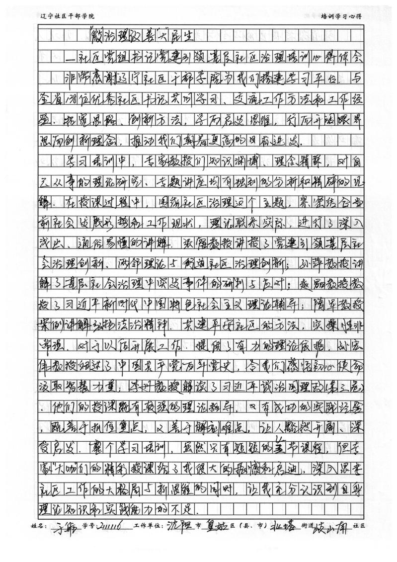 沈阳市皇姑区北塔街道岐山南社区书记于舫学习心得