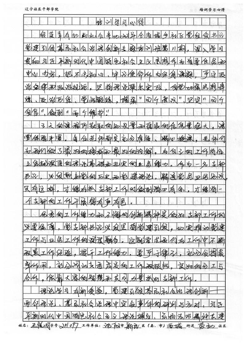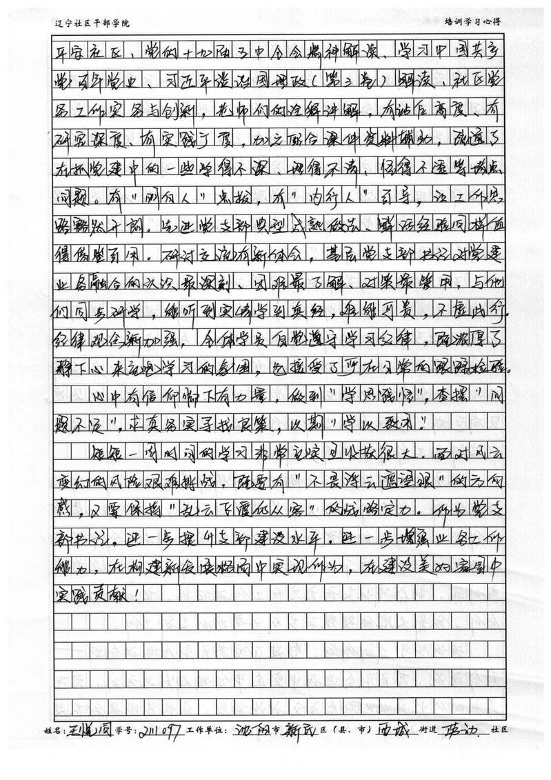 沈阳市新民市西城街道劳动社区书记王悦同学习心得