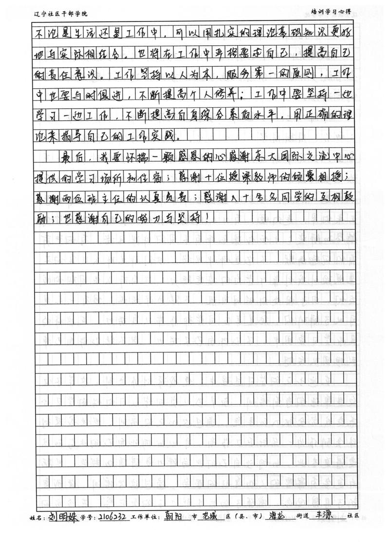 朝阳市龙城区海龙街道丰源社区委员刘明姝培训学习心得