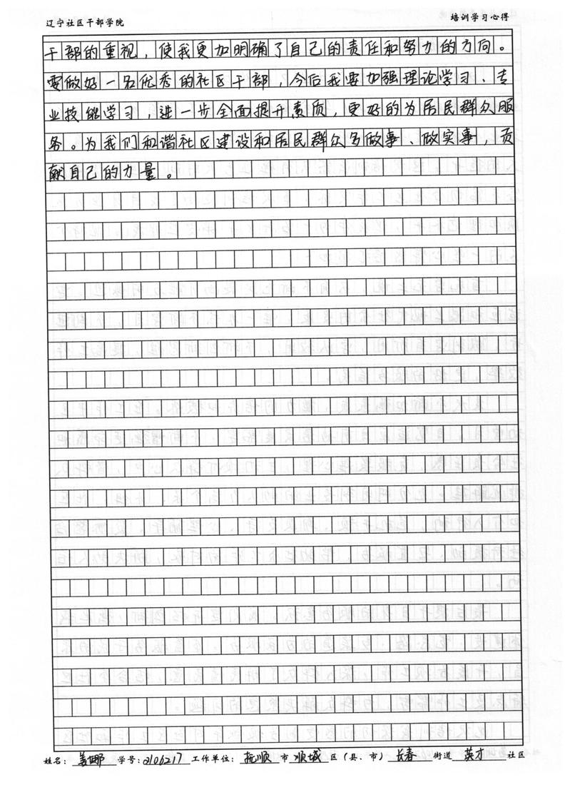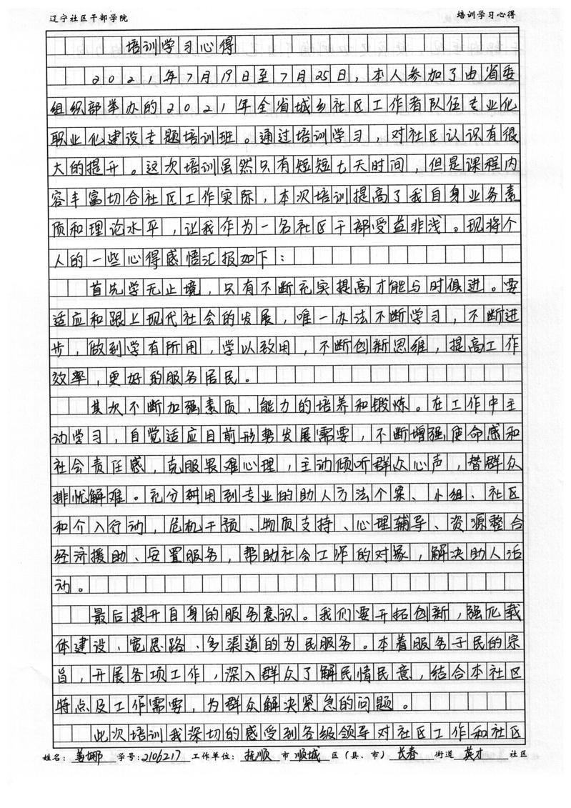 抚顺市顺城区长春街道英才社区副主任姜娜培训学习心得