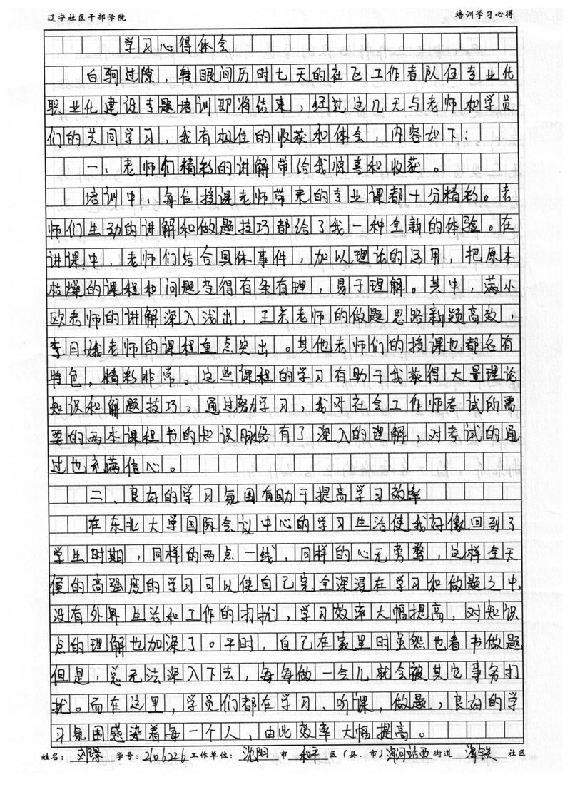 沈阳市和平区浑河站西街道浑铁社区干事刘璟培训学习心得