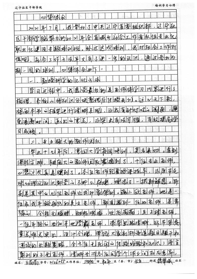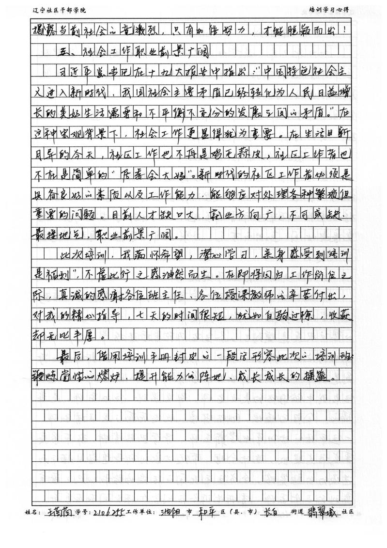 沈阳市和平区长白街道翡翠城社区副书记王苗苗培训学习心得